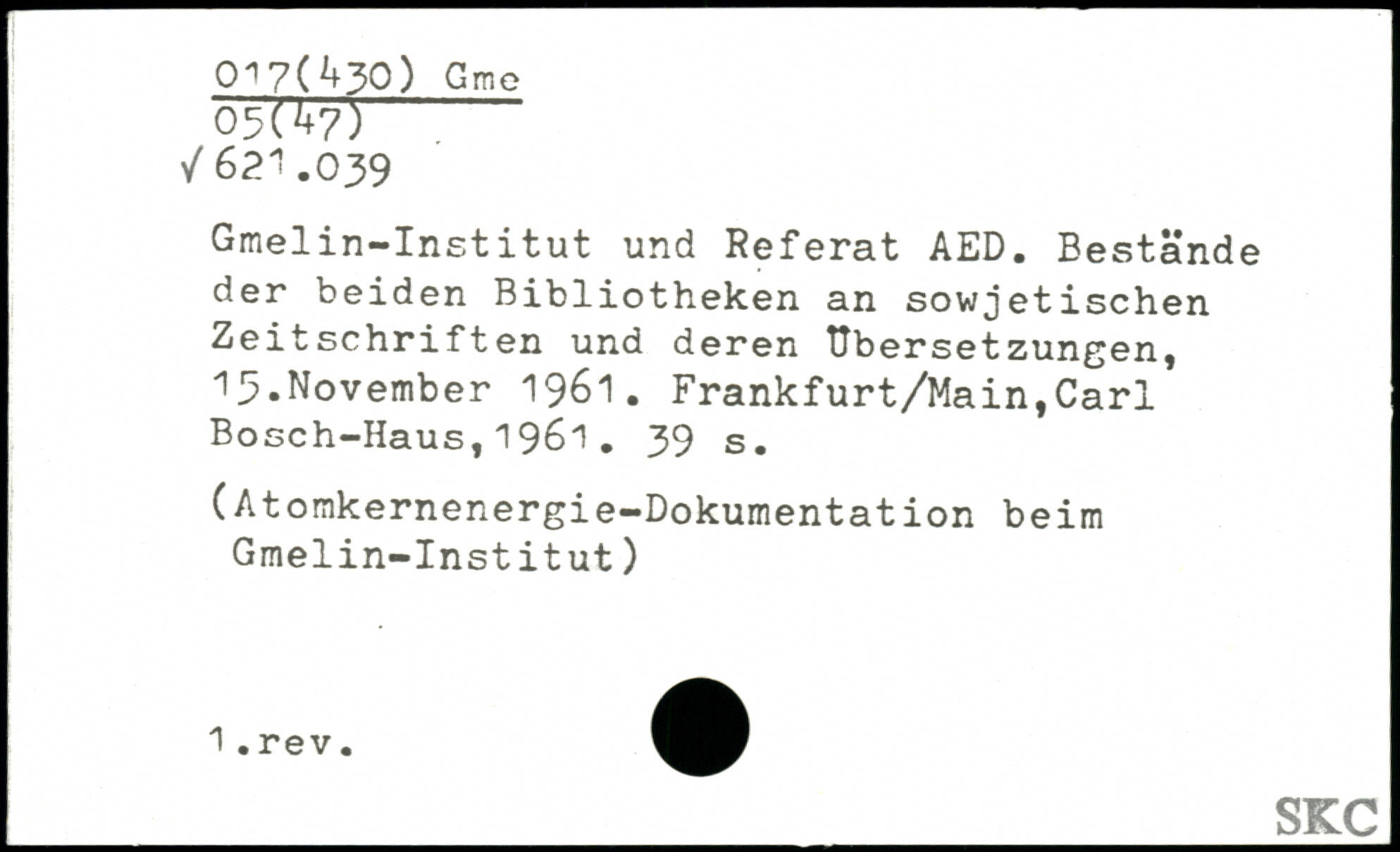 Gmelin-Institut und Referat AED. Bestände der beiden Bibliotheken an sowjetischen Zeitschriften und deren Übersetzungen, 15.November 1961.