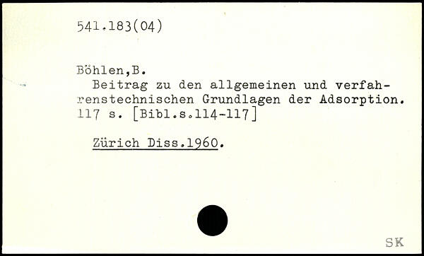Beitrag zu den allgemeinen und verfahrenstechnischen Grundlagen der Adsorption.
