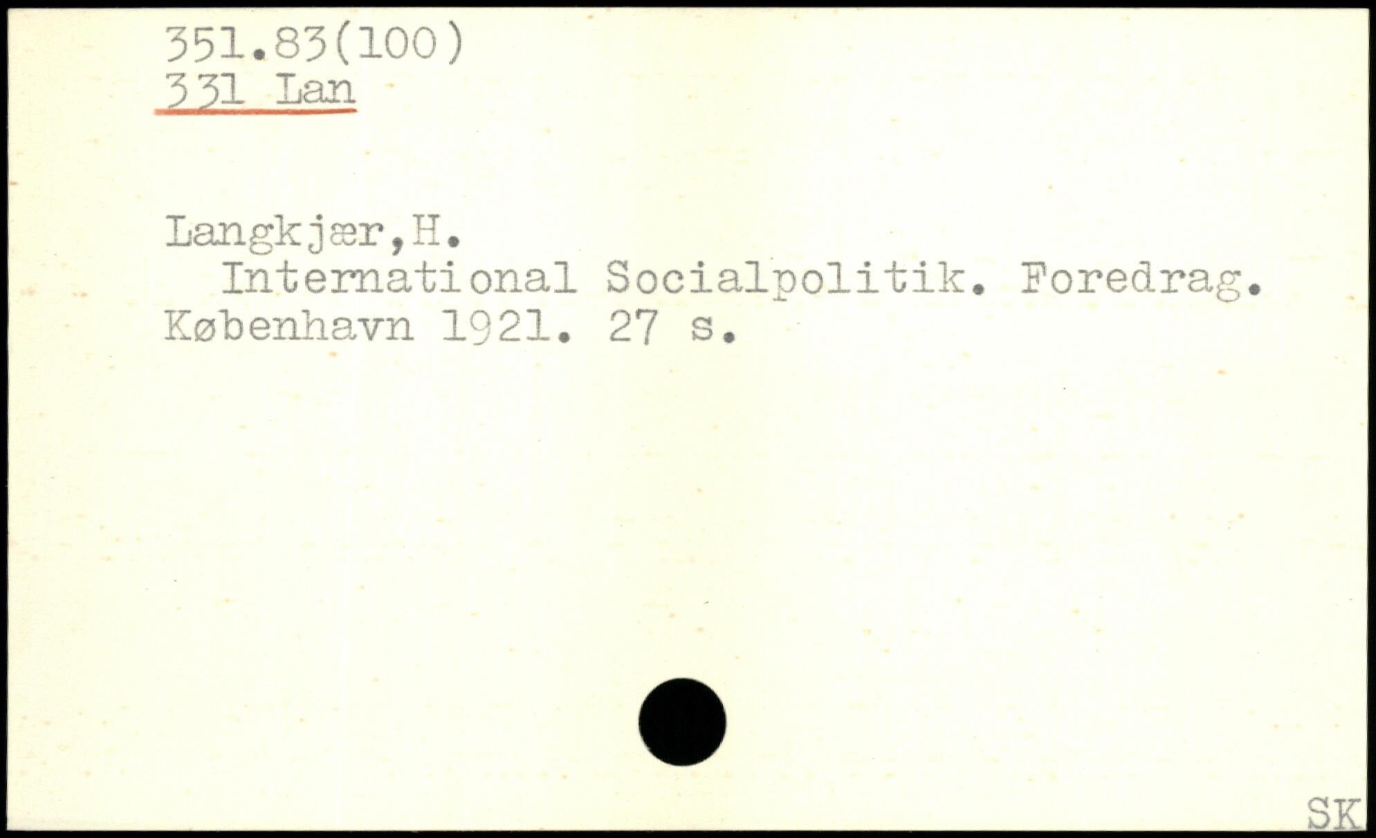 International Socialpolitik. Foredrag.