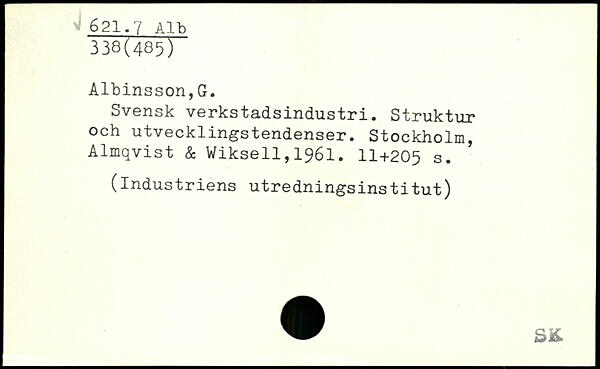 Svensk verkstadsindustri. Struktur och utvecklingstendenser.