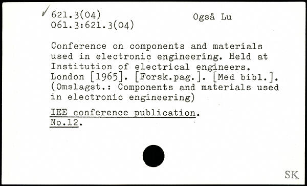 Conference on components and materials used in electronic engineering. Held at Institution of electrical engineers.