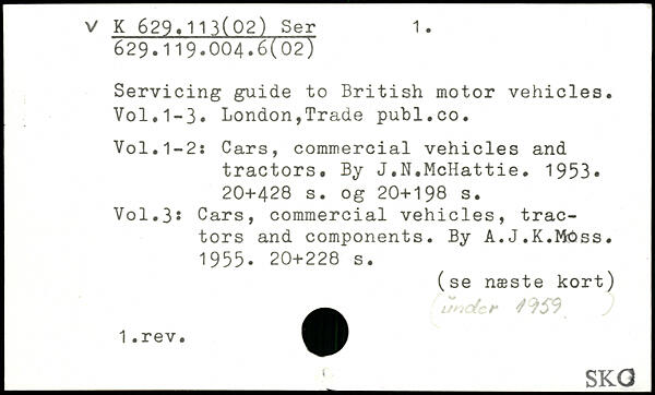 Servicing guide to British motor vehicles. Vol,1-3. London,Trade publ.co.