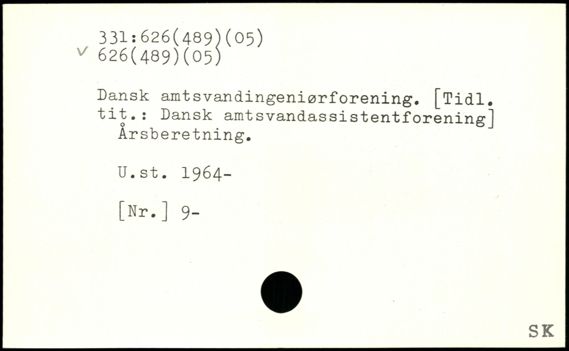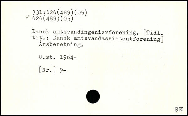 Dansk amtsvandingeniørforening. [Tidl. tit.: Dansk amtsvandassistentforening] Årsberetning. U.st. 1964- [Nr.] 9-