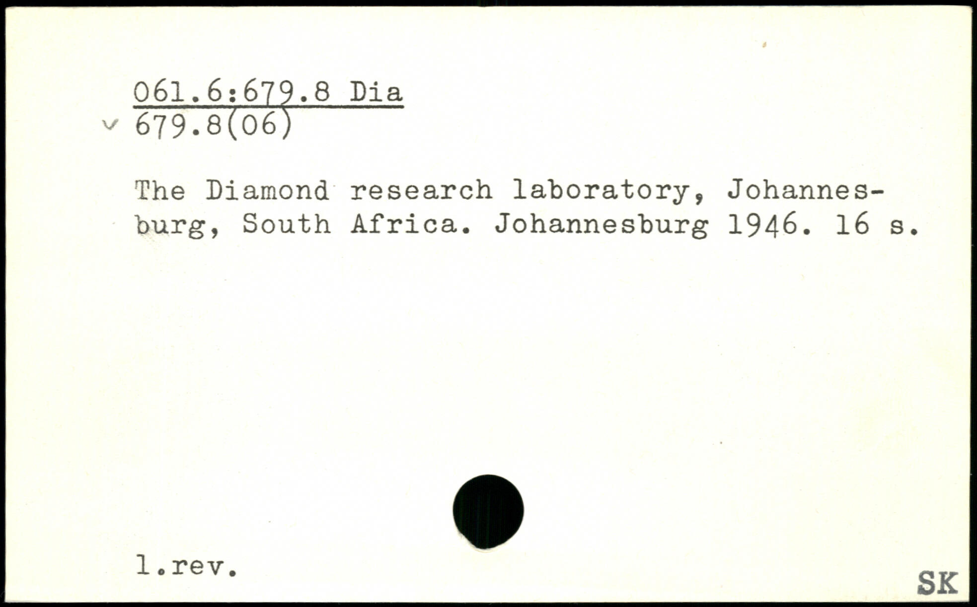 The Diamond research laboratory, Johannesburg, South Africa. Johannesburg 1946.