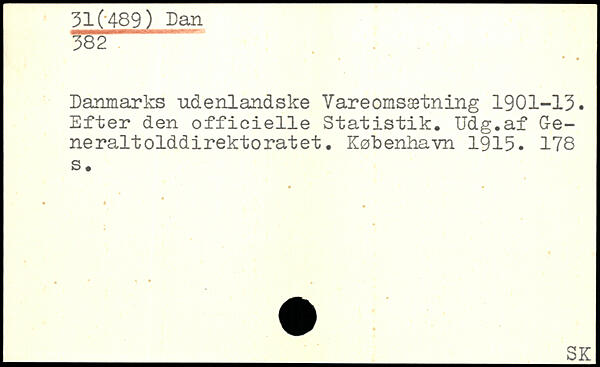 Danmarks udenlandske Vareomsætning 1901-13. Efter den officielle Statistik. Udg.af G-e-neraltolddirektoratet.