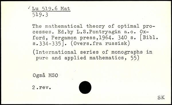 The mathematical theory of optimal processes. Ed.by L.S.Pontryagin a.o.