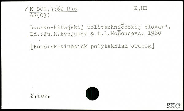 Russko-kitajskij politechniceskij slovar.. Ed.:Ju.M.Evsjukov & L.L.Mosenceva. 1960