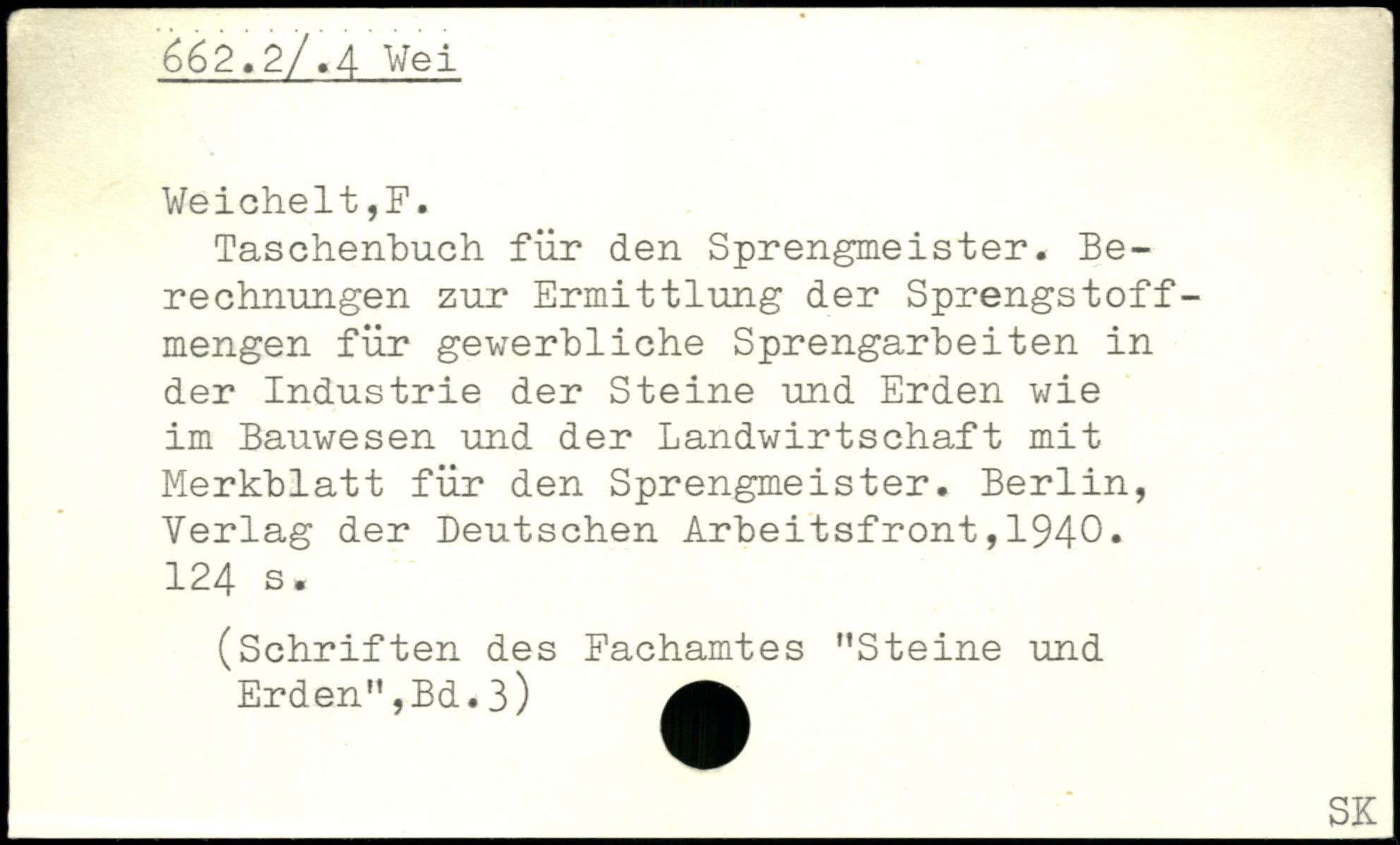Taschenbuch für den Sprengmeister. Berechnungen zur Ermittlung der Sprengstoffmengen für gewerbliche Sprengarbeiten in der Industrie der Steine und Erden wie im Bauwesen und der Landwirtschaft mit Merkblatt für den Sprengmeister.