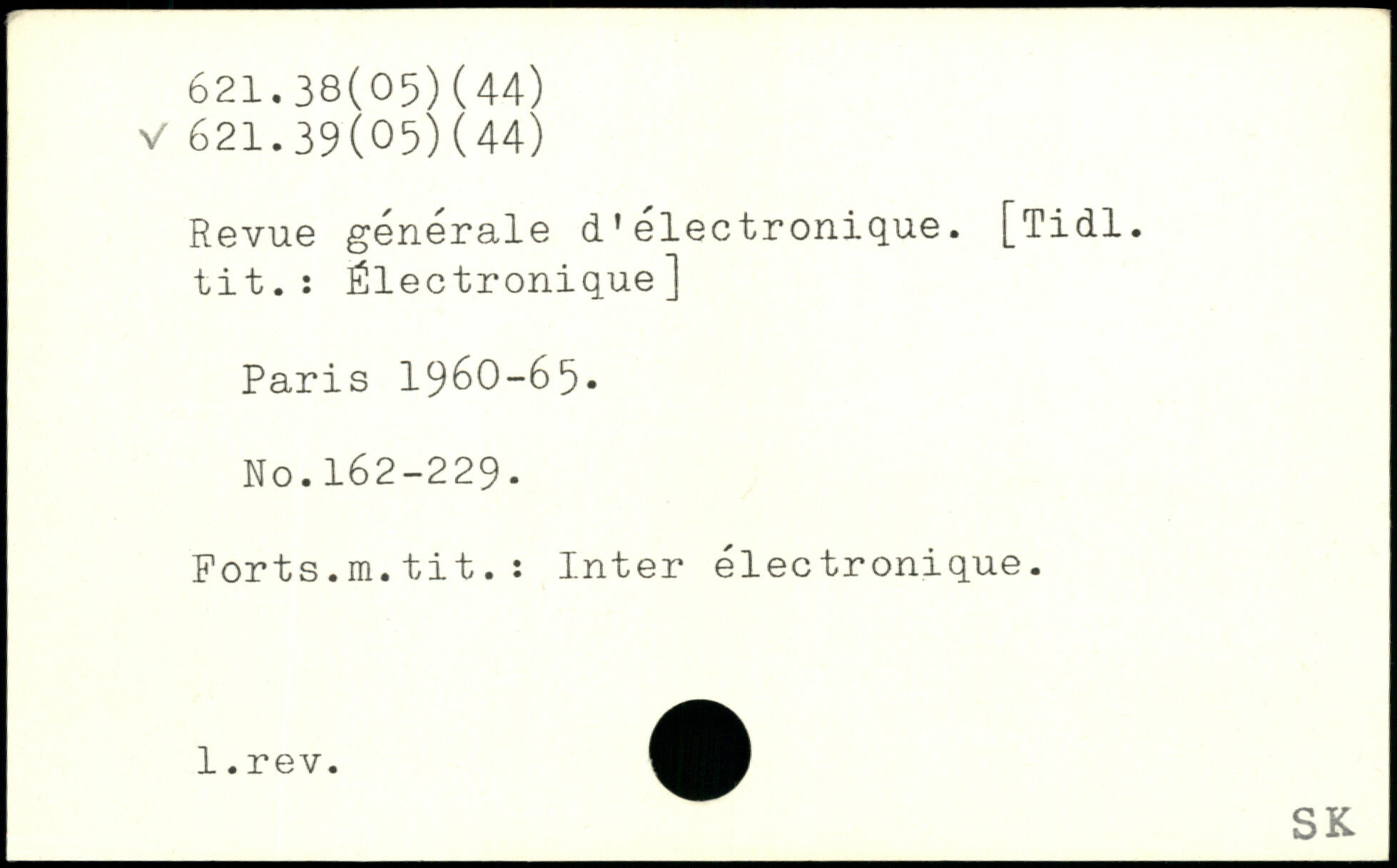 Revue générale d'électronique. [Tidl. lit.: Électronique]