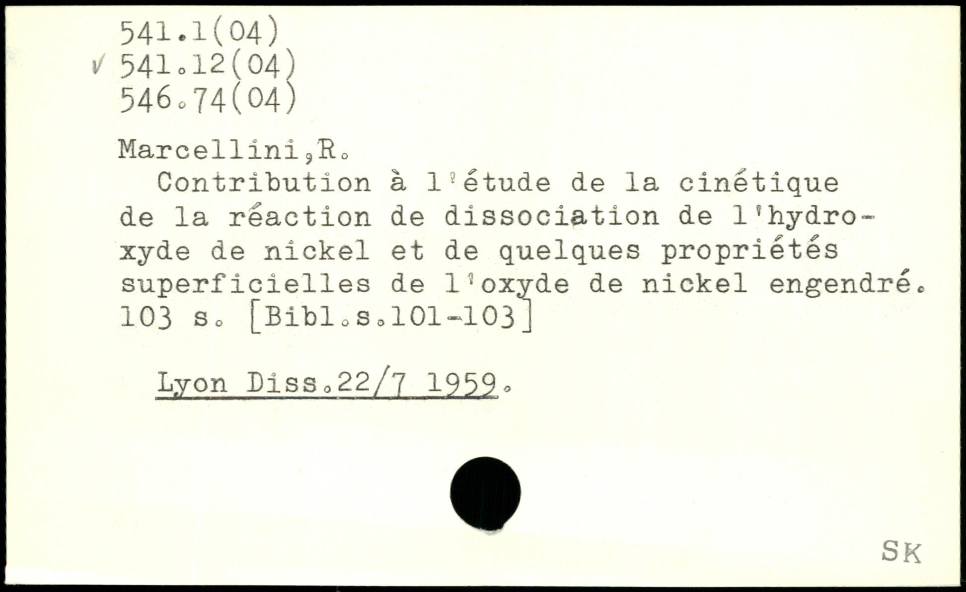 Contribution à 1.étude de la cinétique de la réaction de dissociation de 1’hydroxyde de nickel et de quelques propriétés superficielles de l’oxyde de nickel engendré