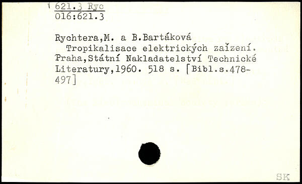 Rychtera,M. a B.Bartakova Tropikalisace elektrickych zaizeni. Praha,Stâtni Nakladatelstvi Technické Literatury,1960. 5I