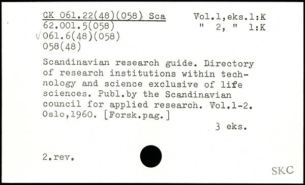 Scandinavian research guide. Directory of research institutions within technology and science exclusive of life sciences.