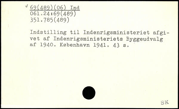 Indst1111ng til Indenrigsministeriet afgi~ vet af Indenrigsministeriets Byggeudvalg af 1940o