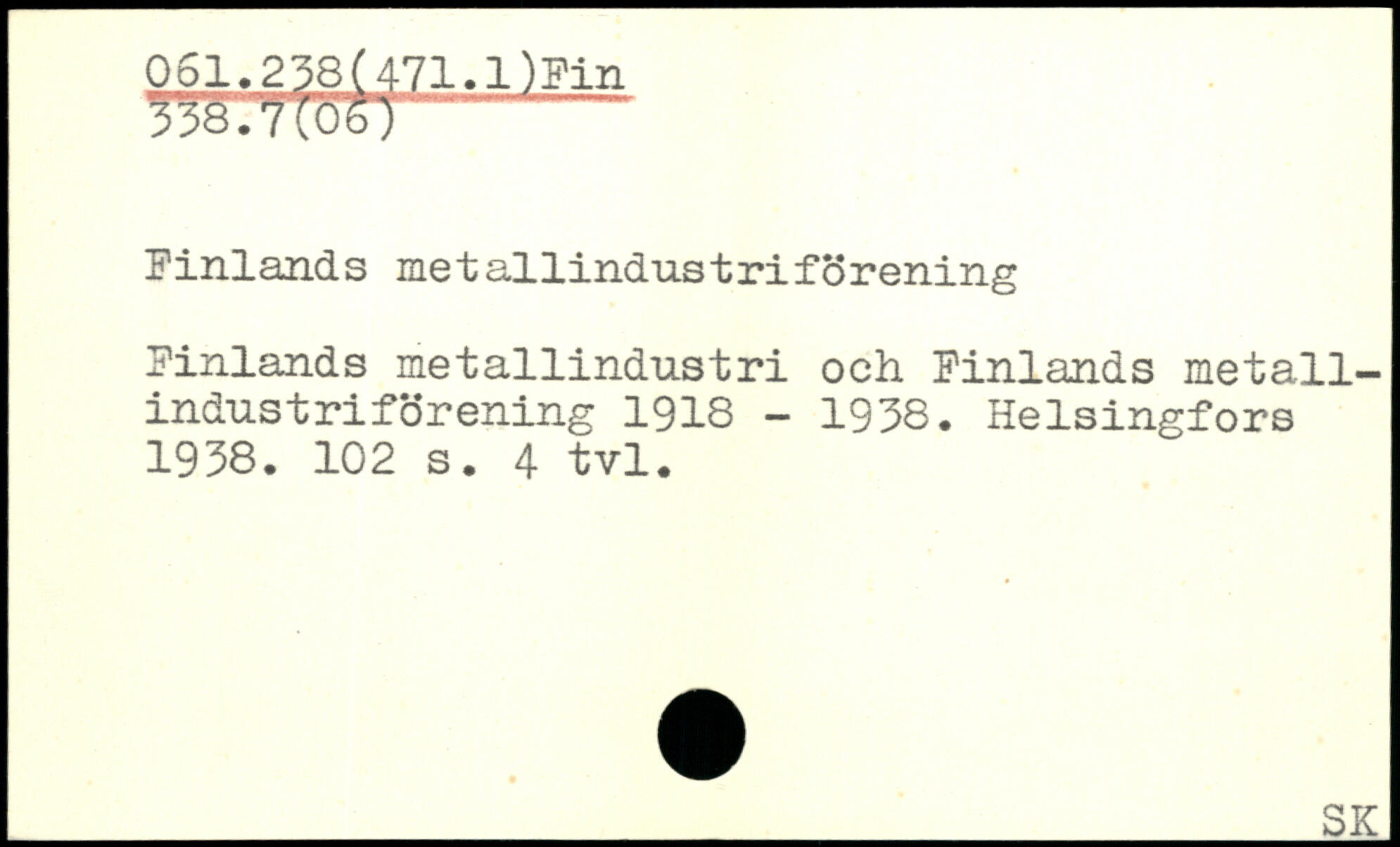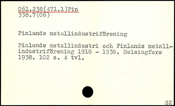 Finlands metallindustriförening Finlands metallindustri och Finlands metallindustri Förening 1918 - 1938.
