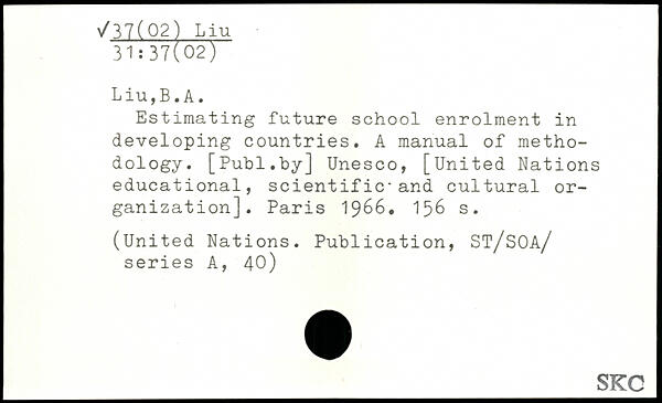 Estimating future school enrolment in developing countries. A manual of methodology. [Publ.hy] Unesco, [United Nations educational, scientific.and cultural organization].