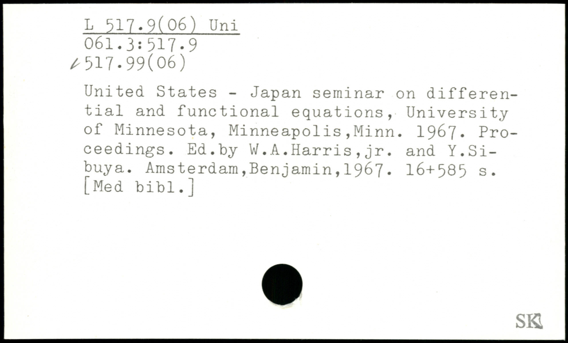 United States - Japan seminar on differential and functional equations, University of Minnesota, Minneapolis,Minn. 1967. Proceedings. Ed.by W.A.Harris,jr. and Y.Si-buy a.