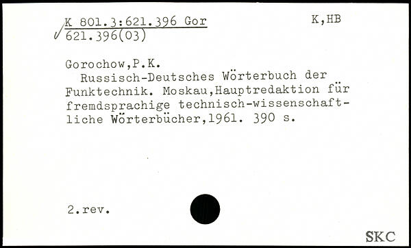 Russisch-Deutsches Wörterbuch der Funktechnik. Moskau,Hauptredaktion für fremdsprachige technisch-wissenschaft-liehe Worterbücher,1961.
