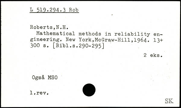 Mathematical methods in reliability engineering.