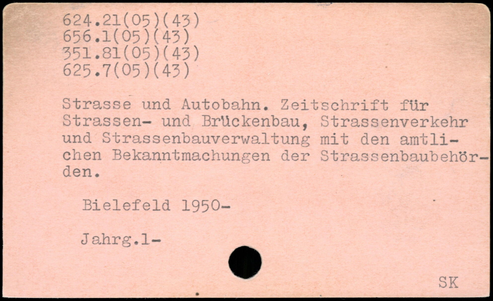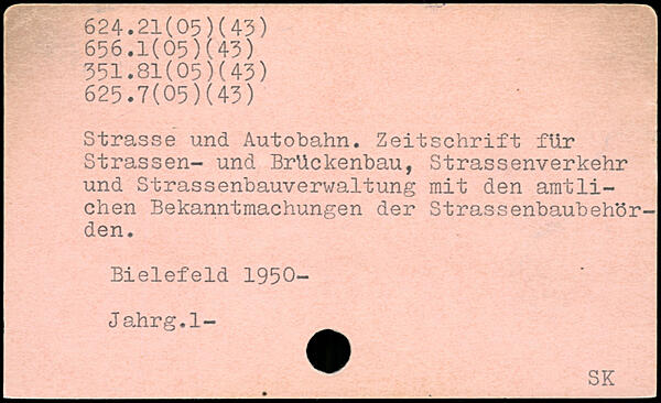 Strasse und Autobahn. Zeitschrift für Strassen- und Brückenbau, Strassenverkehr und Strassenbauverwaltung mit den amtlichen Bekanntmachungen der Strassenbaubehör-den. Bielefeld 1950-Jahrg.l-