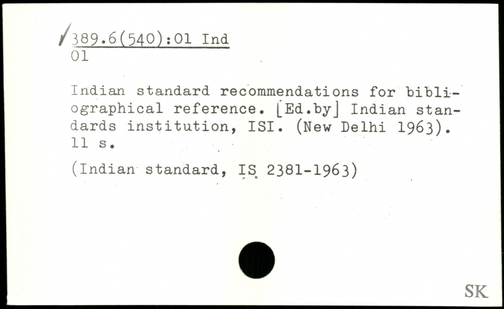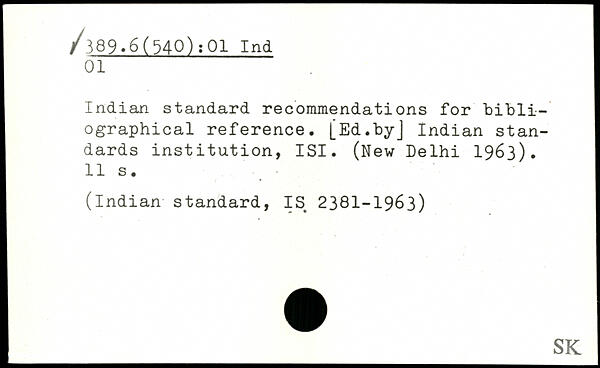 Indian standard recommendations for bibliographical reference. [Ed.by] Indian standards institution, ISI. (New Delhi 1963).