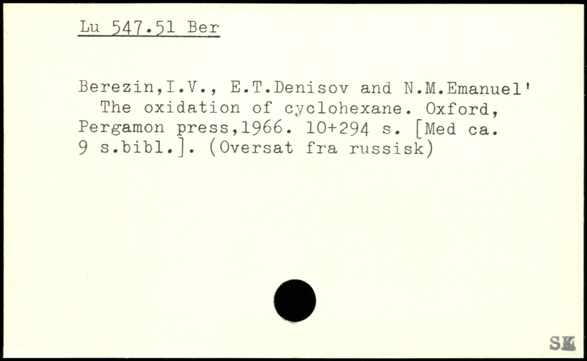 Berezin,I.V., E.T.Denisov and N.M.Emanuel' The oxidation of cyclohexane.