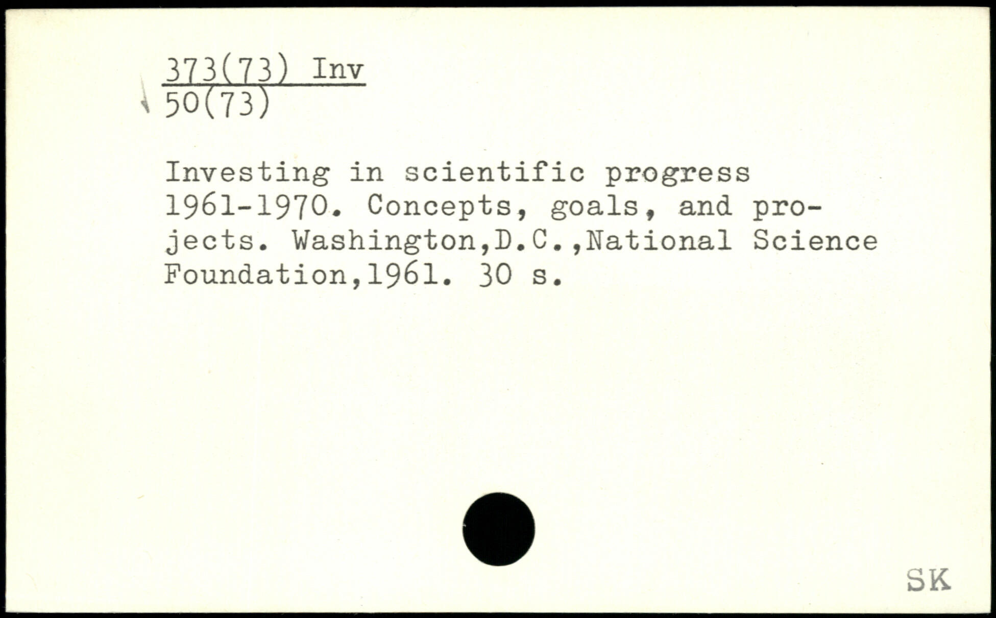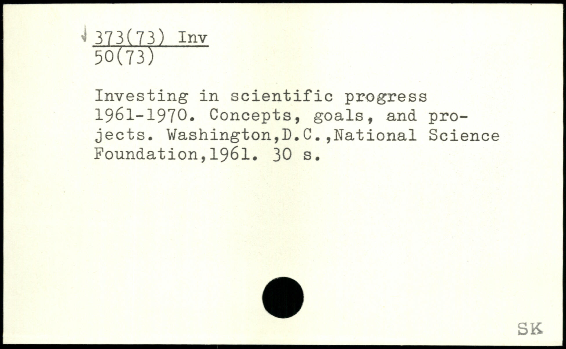 Investing in scientific progress 1961-1970. Concepts, goals, and projects.