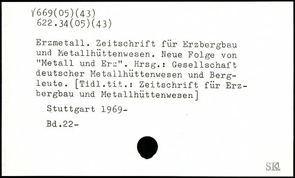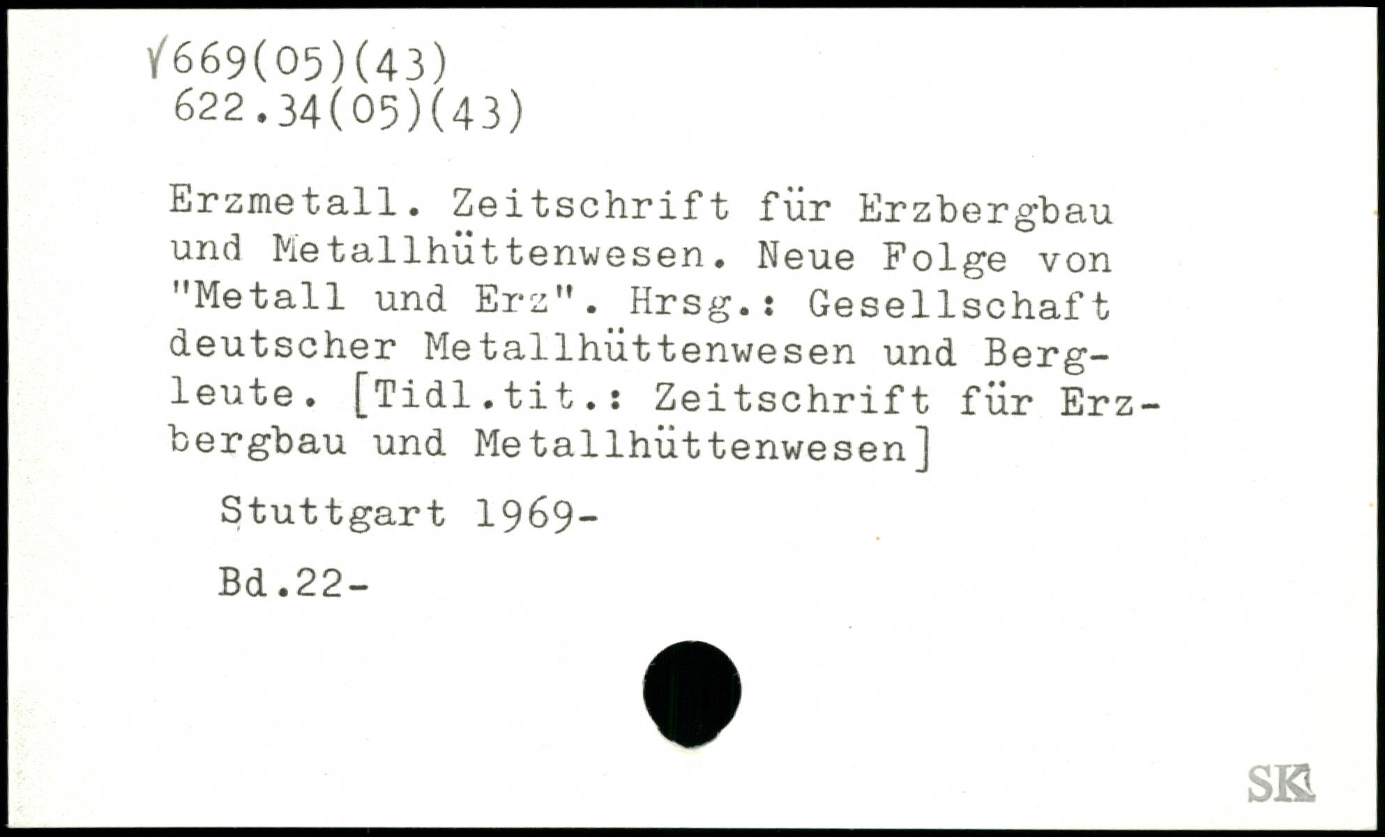 Erzmetall. Zeitschrift für Erzbergbau und Metallhuttenwesen. Neue Folge von "Metall und Erz". Jhrsg.: Gesellschaft deutscher Metallhüttenwesen und Bergleute. [Tidl.tit.: Zeitschrift für Erzbergbau und Metallhüttenwesen]