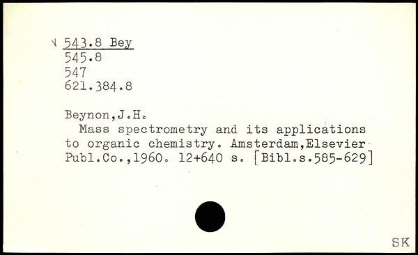 Mass spectrometry and its applications to organic chemistry. Amsterdam,Elsevier Publ.Co.,1960.