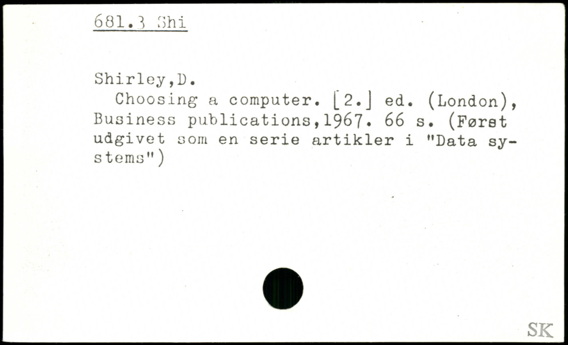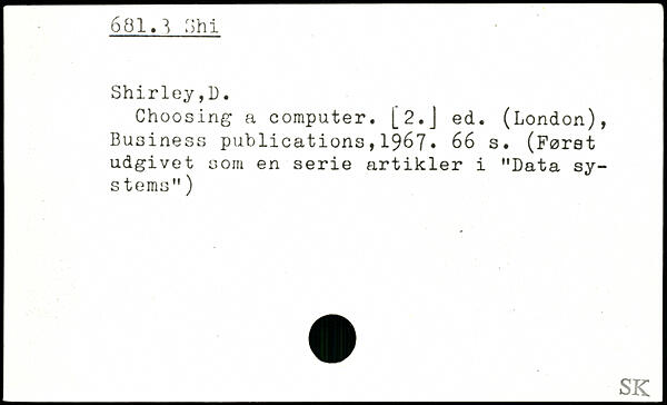 Choosing a computer. [2.J ed. (London), I Business publications,1967.