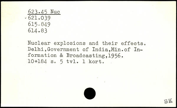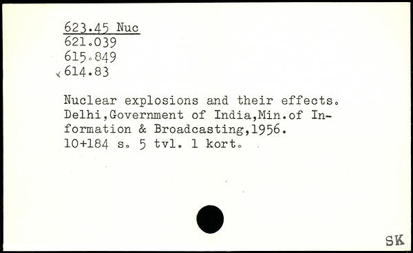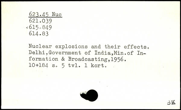 Nuclear explosions and their effects. Delhi,Government of India,Min.of Information & Broadcasting,1956.