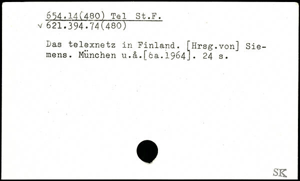Das telexnetz in Finland. [Hrsg.von] Siemens. München u.å.[ca.1964j.