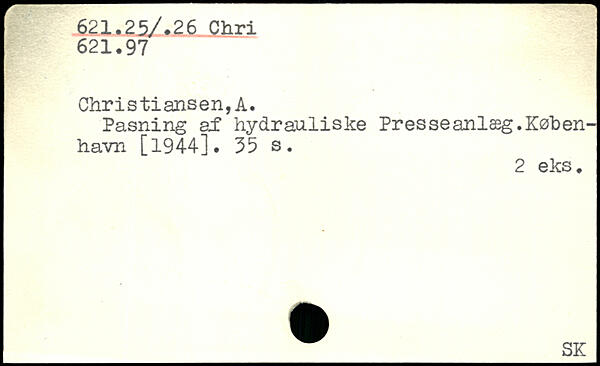 Pasning si1 hydrauliske Pr es se anlæg.