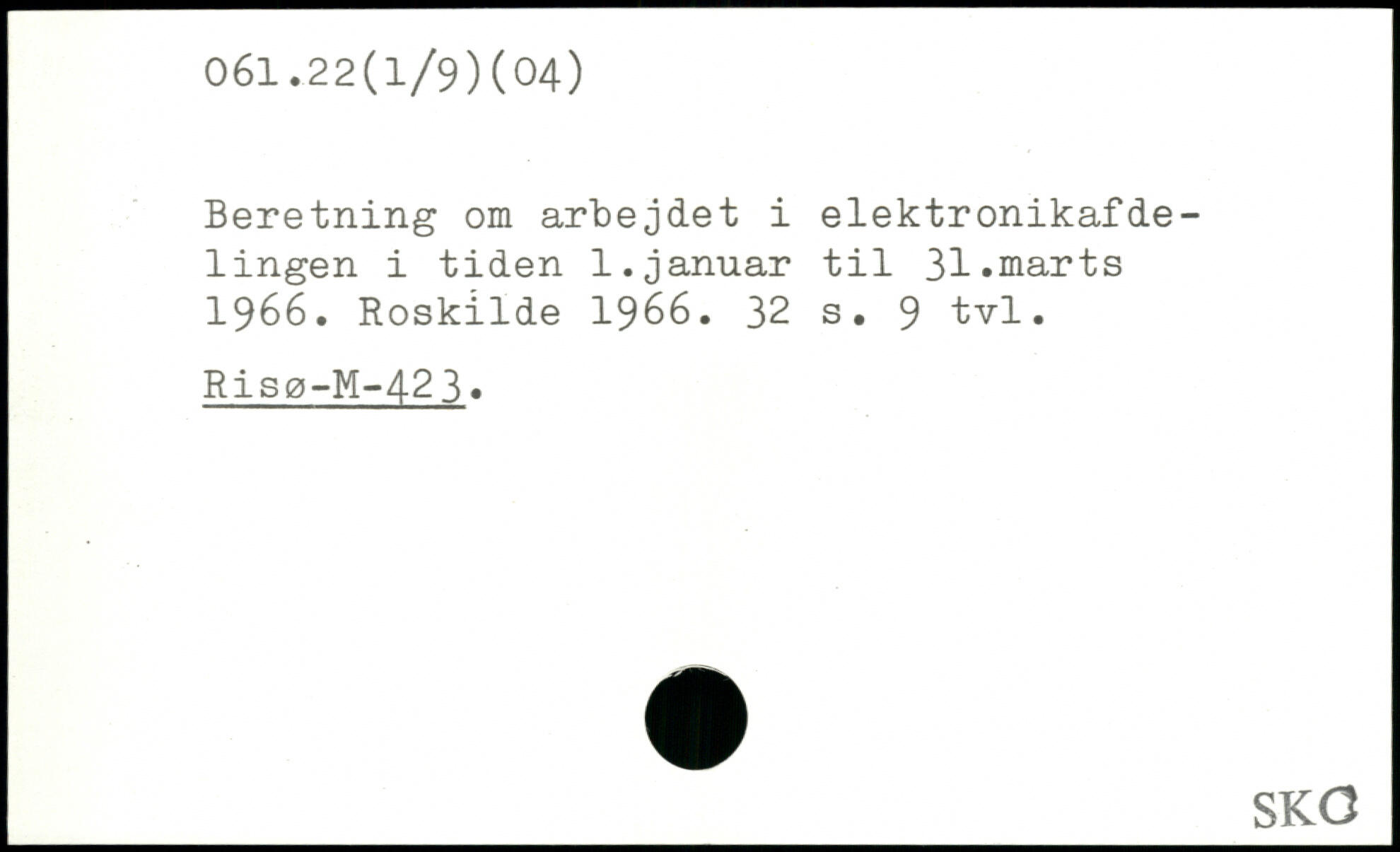 Beretning om arbejdet i elektronikafdelingen i tiden 1.januar til 31,marts 1966. Roskilde 1966.