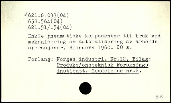 Enkle pneumatiske komponenter til bruk ved mekanisering og automatisering av arbeids-operasjoner. Blindern 19600