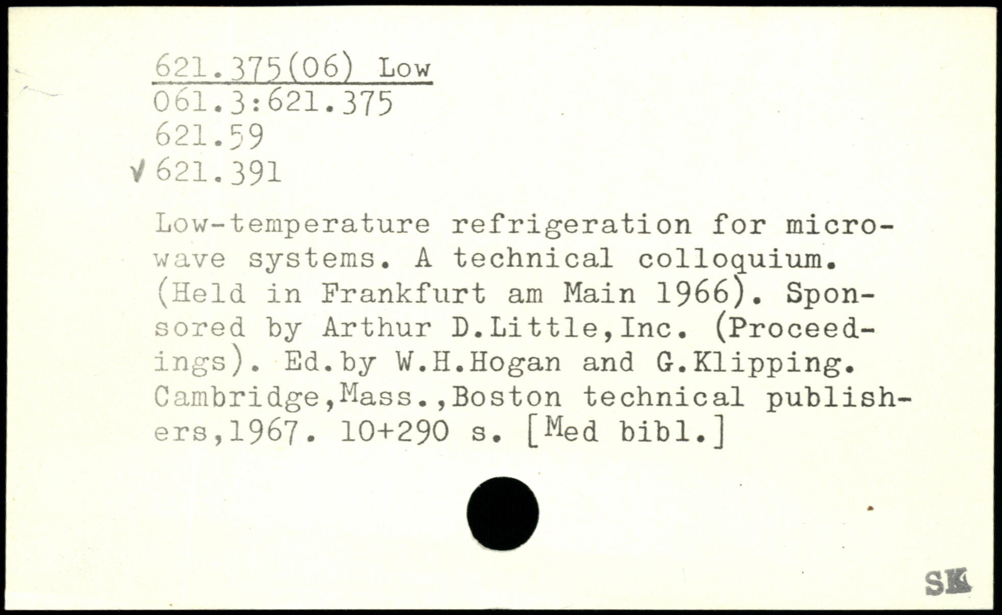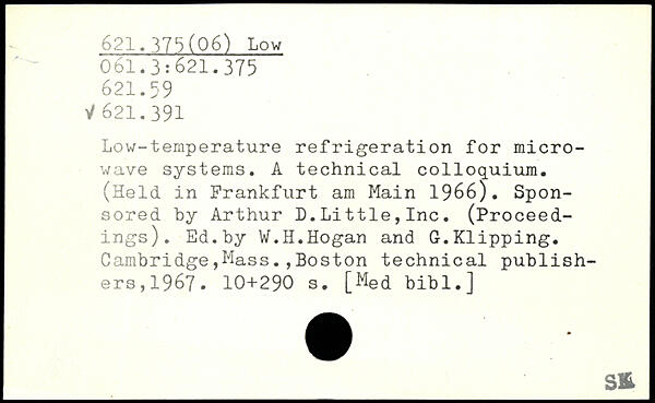 Low-temperature refrigeration for micro-wave systems. A technical colloquium. (Held in