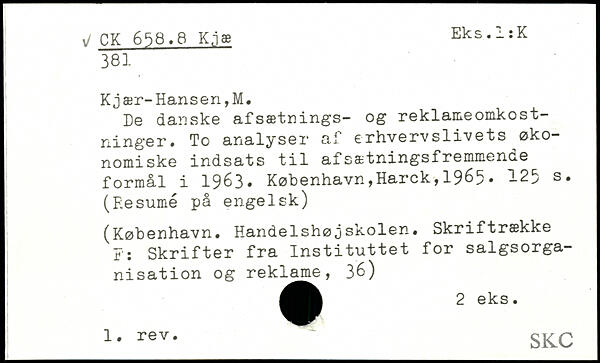 De danske afsætnings- og reklameomkostninger. To analyser af erhvervslivets økonomiske indsats til aisætningsfremmende formål i 1963.