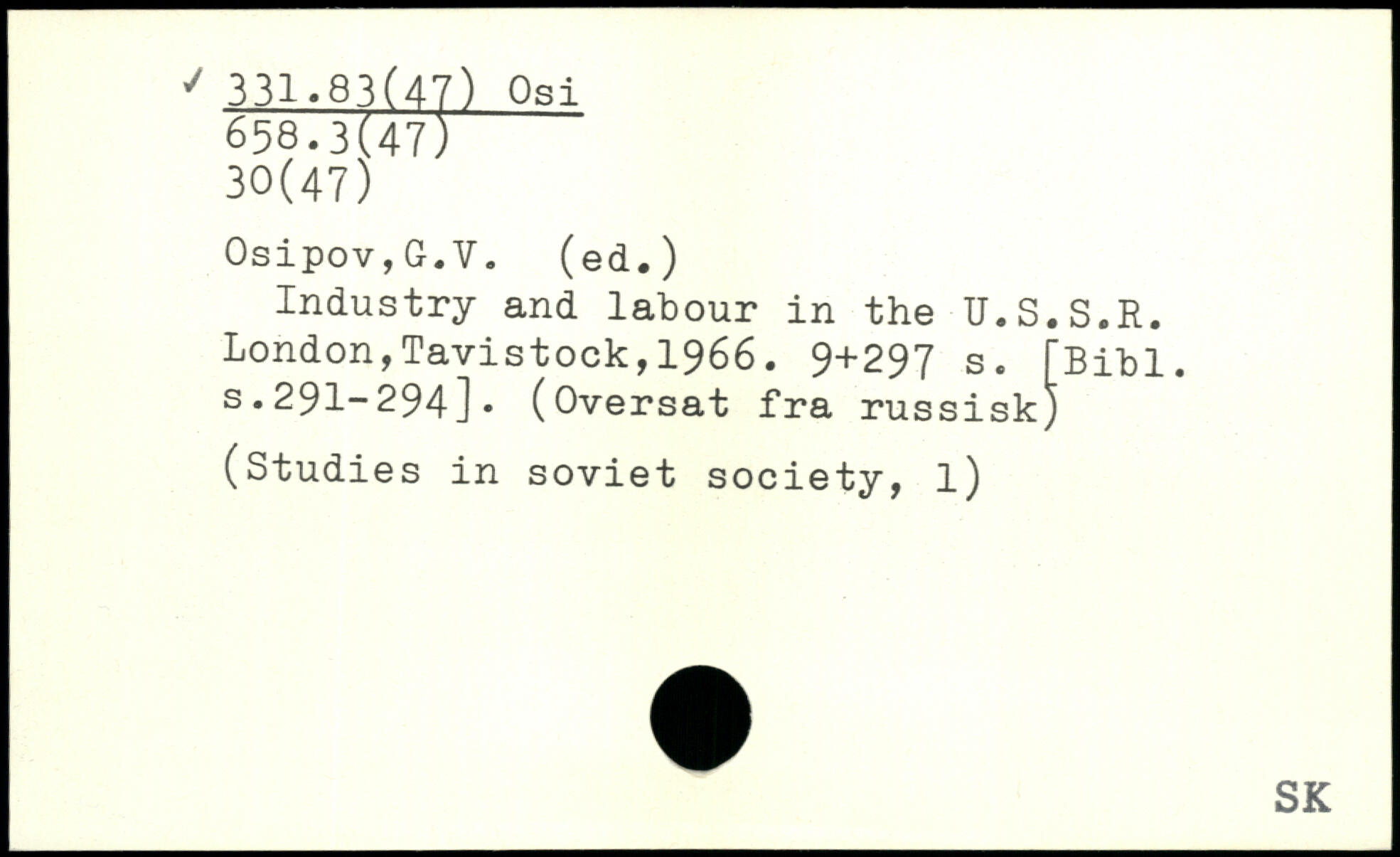 Industry and labour in the U.S.S.R.