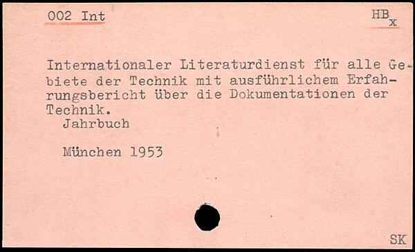 Internationaler Literaturdienst für alle Gebiete der Technik mit ausführlichem Erfahrungsbericht über die Dokumentationen der Technik. Jahrbuch
