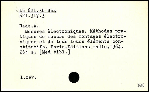 Mesures électroniques. Méthodes pratiques de mesure des montages électroniques et de tous leurs éléments constitutifs.