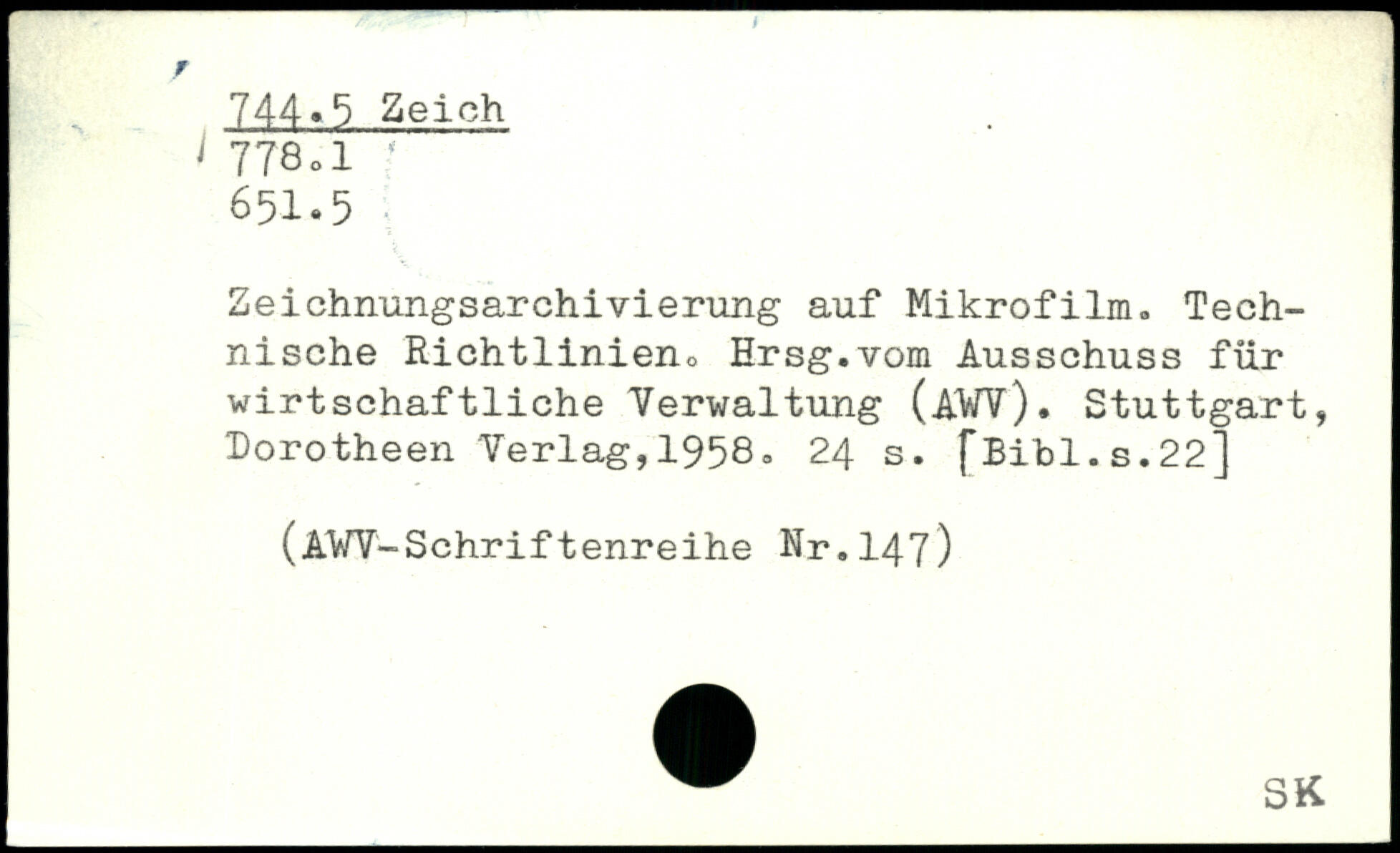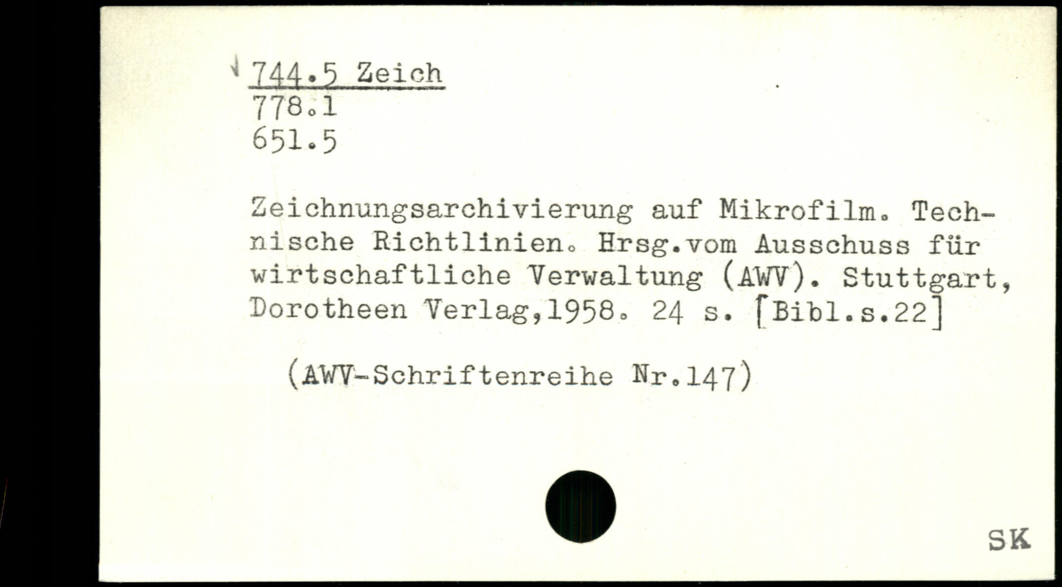 Zeichnungsarchivierung auf Mikrofilm. Technische Richtlinieno Hrsg.vom Ausschuss für wirtschaftliche Verwaltung (AWV).