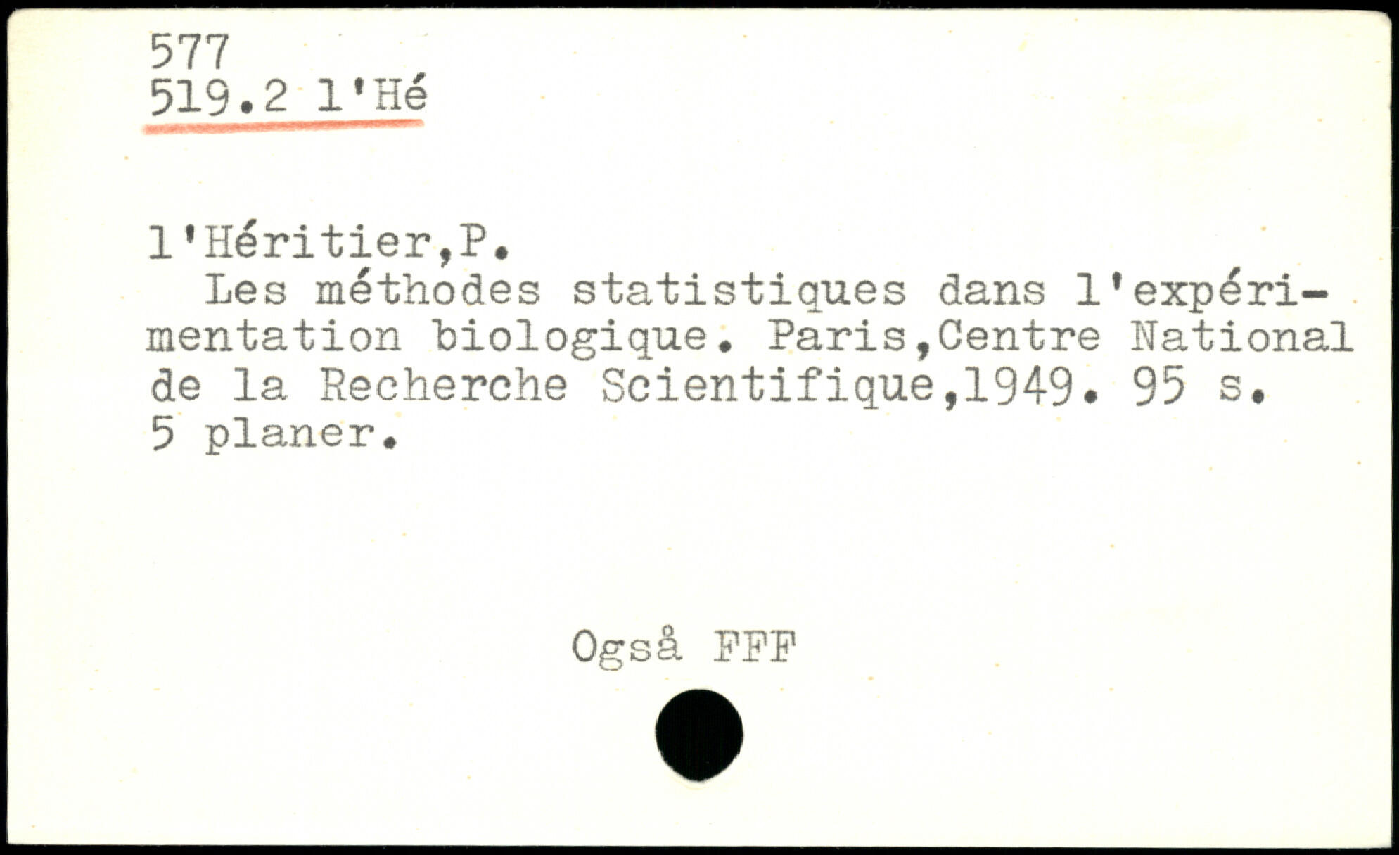 519.2 JLMïé 1'Héritier,P. Les méthodes statistiques dans 1.expérimentation biologique. Paris,Centre National de la Recherche Scientifique,1949.