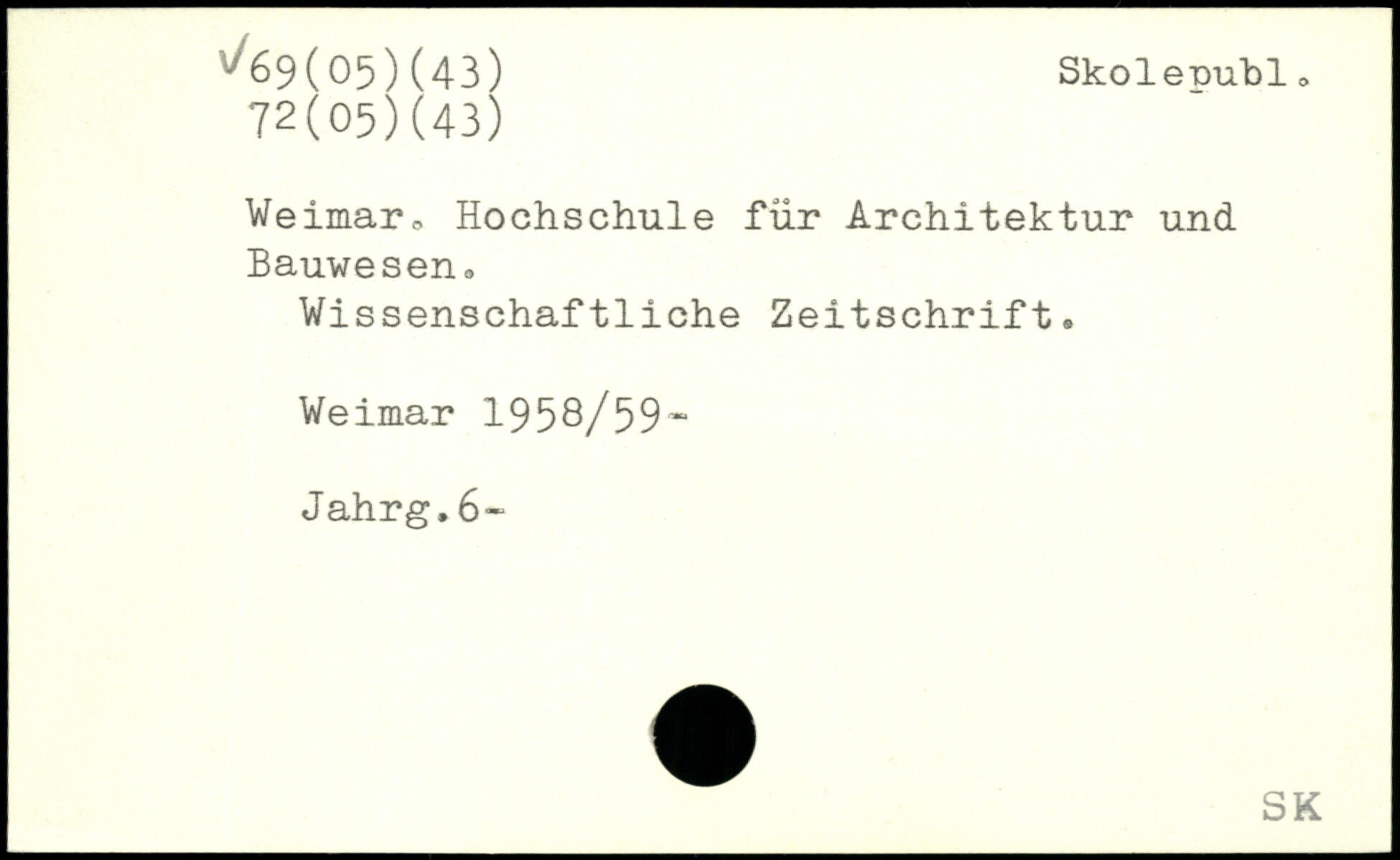 Weimar, Hochschule für Architektur und Bauwesen, Wissenschaftliche Zeitschrift® Weimar 1958/59. Jahrg,6-