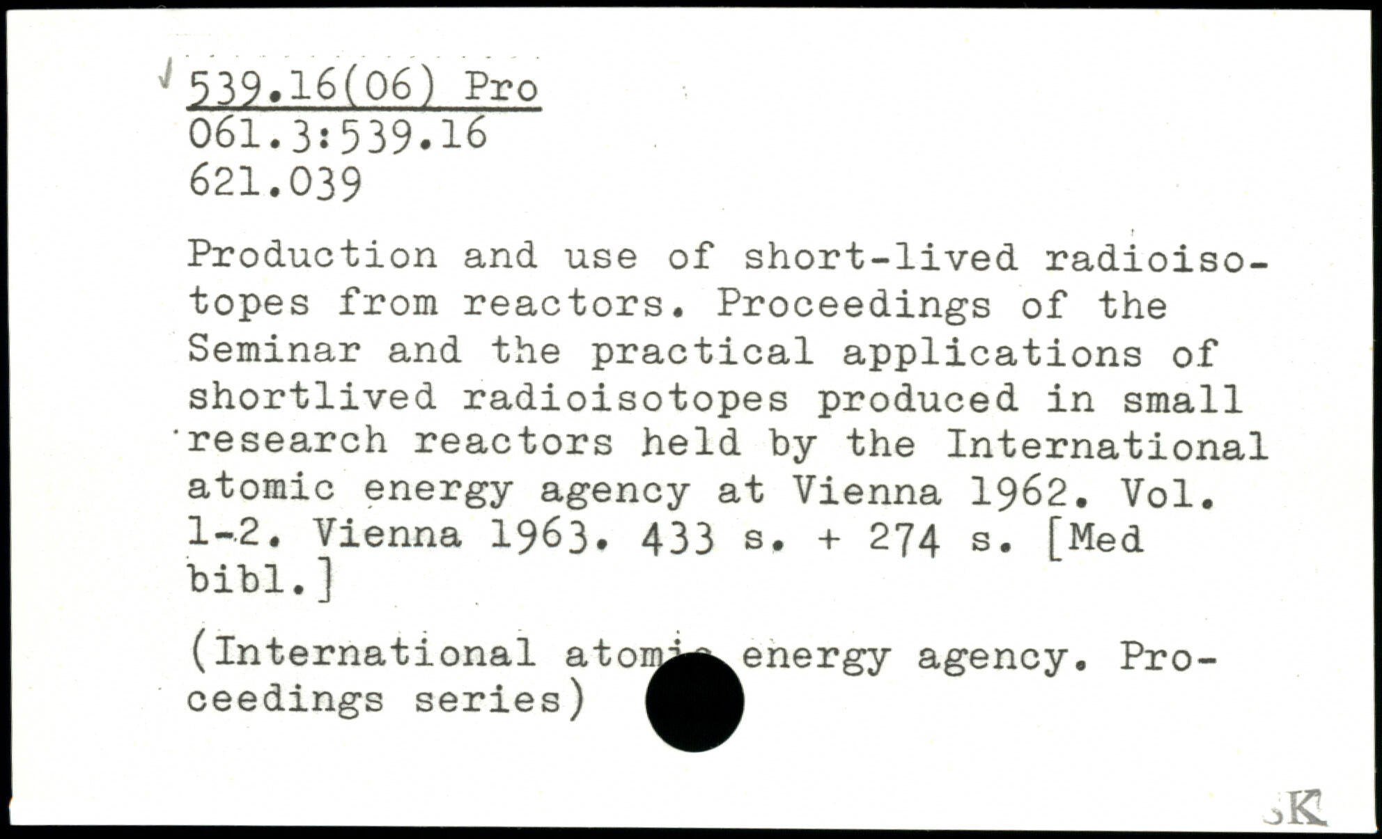 Production and use of short-lived radioisotopes from reactors. Proceedings of the Seminar and the practical applications of shortlived radioisotopes produced in small ■research reactors held by the International atomic energy agency at Vienna 1962. Vol. 1-2. Vienna 1963.