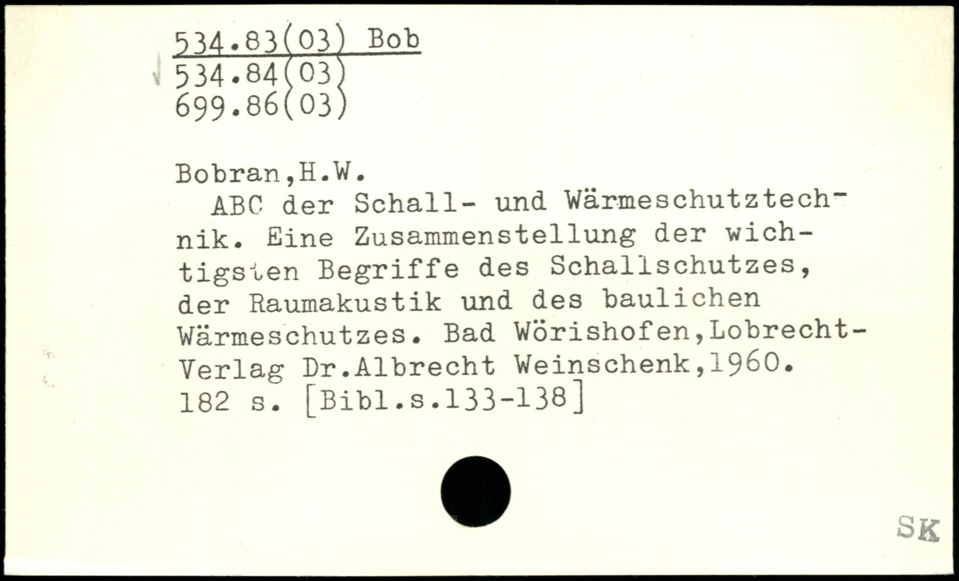 ABC der Schall- und Wärmeschutztech“ nik. Eine Zusammenstellung der wichtigsten Begriffe des Schallschutzes, der Raumakustik und des baulichen Värmeschutzes. Bad Vörishofen,Lobrecht-Verlag Dr.Albrecht Weinschenk,1960.