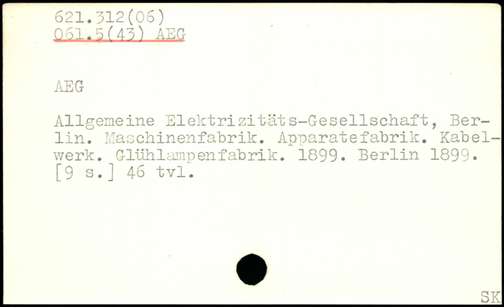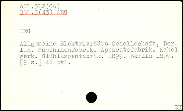 Allgemeine Elektrizitäts-Gesellschaft, Berlin. Maschinenfabrik. Apparatefabrik. Kabelwerk. Glühlampenfabrik. 1899.
