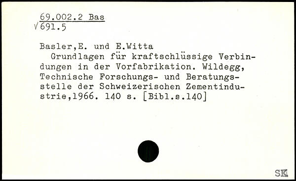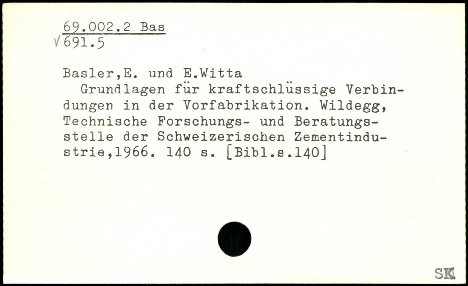Grundlagen für kraft schlüssige Verbindungen in der Vorfabrikation. Wildegg, Technische Porschungs- und Beratungsstelle der Schweizerischen Zementindustrie,1966.