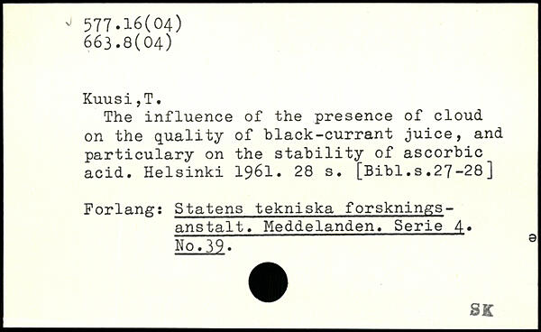 The influence of the presence of cloud on the quality of black-currant juice, and particulary on the stability of ascorbic acid.