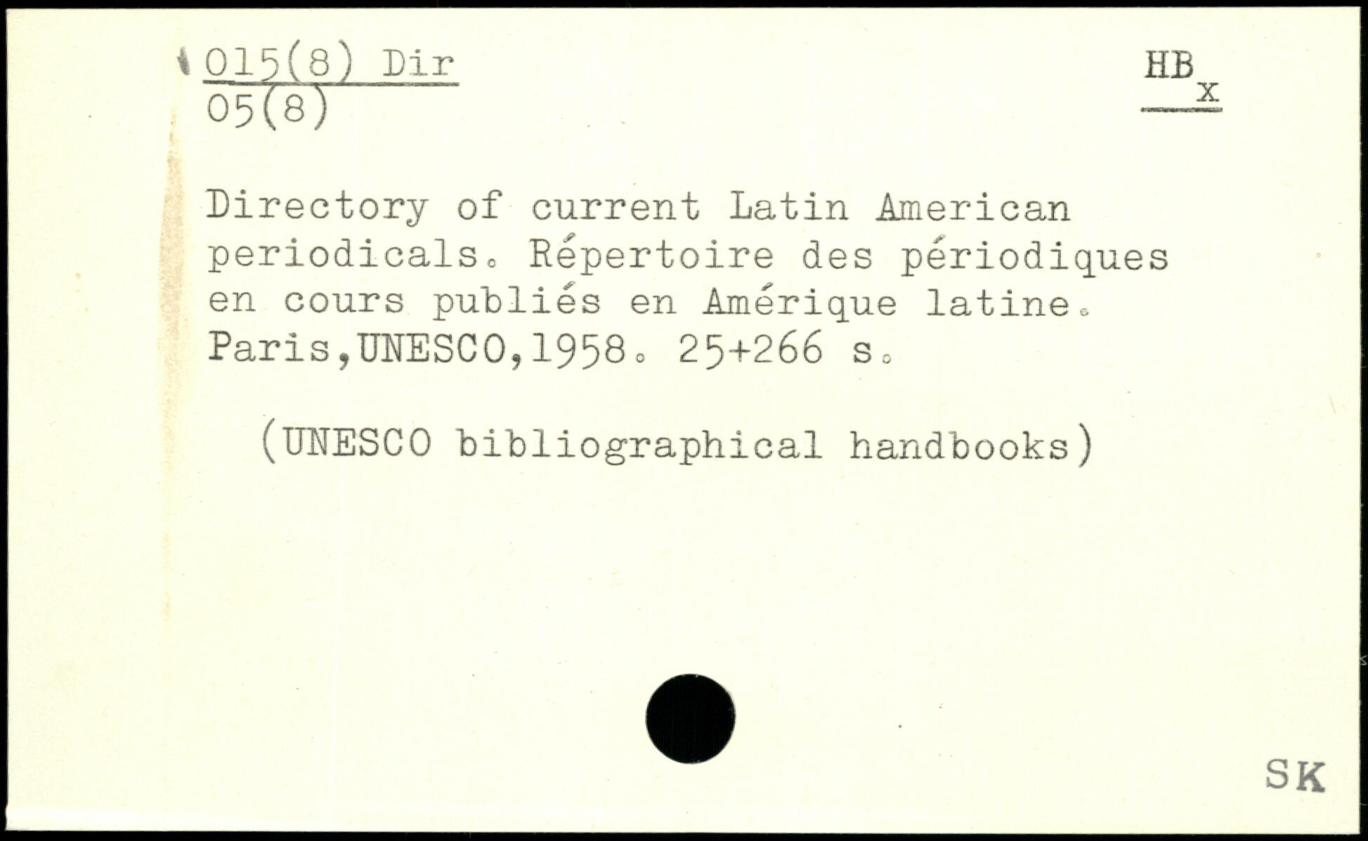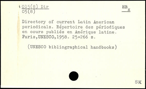 Directory of current Latin American periodicalso Repertoire des périodiques en cours publiés en