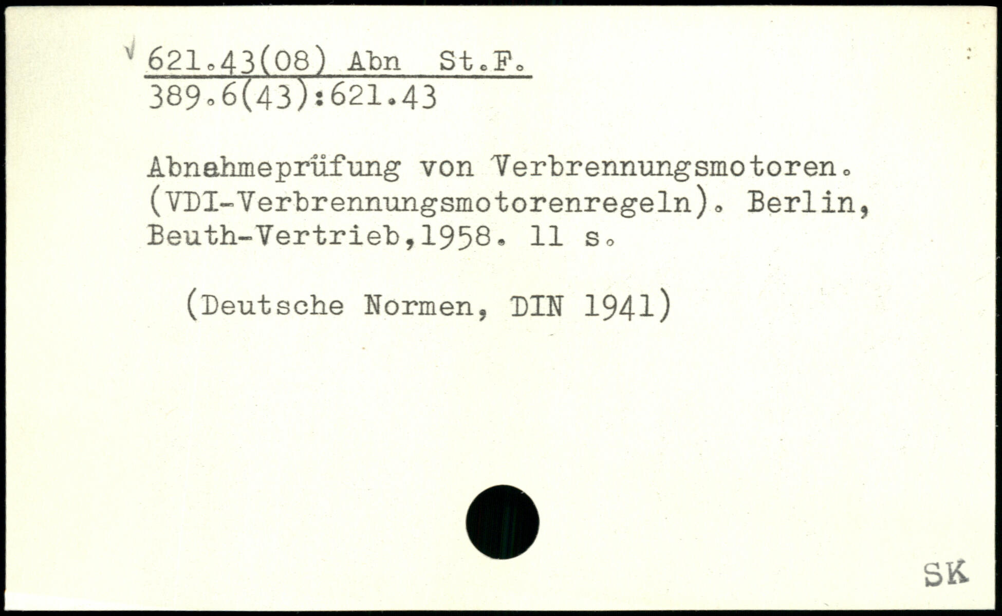 Abnahmeprüfung von Yerbrennungsmotoren, (VDl-Yerbrennungsmotorenregein) <