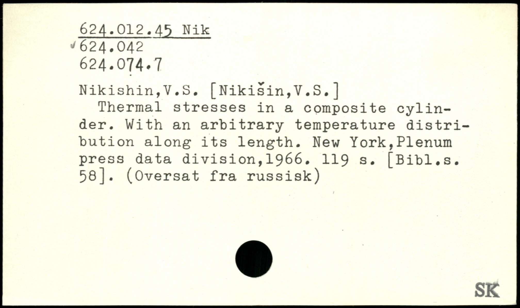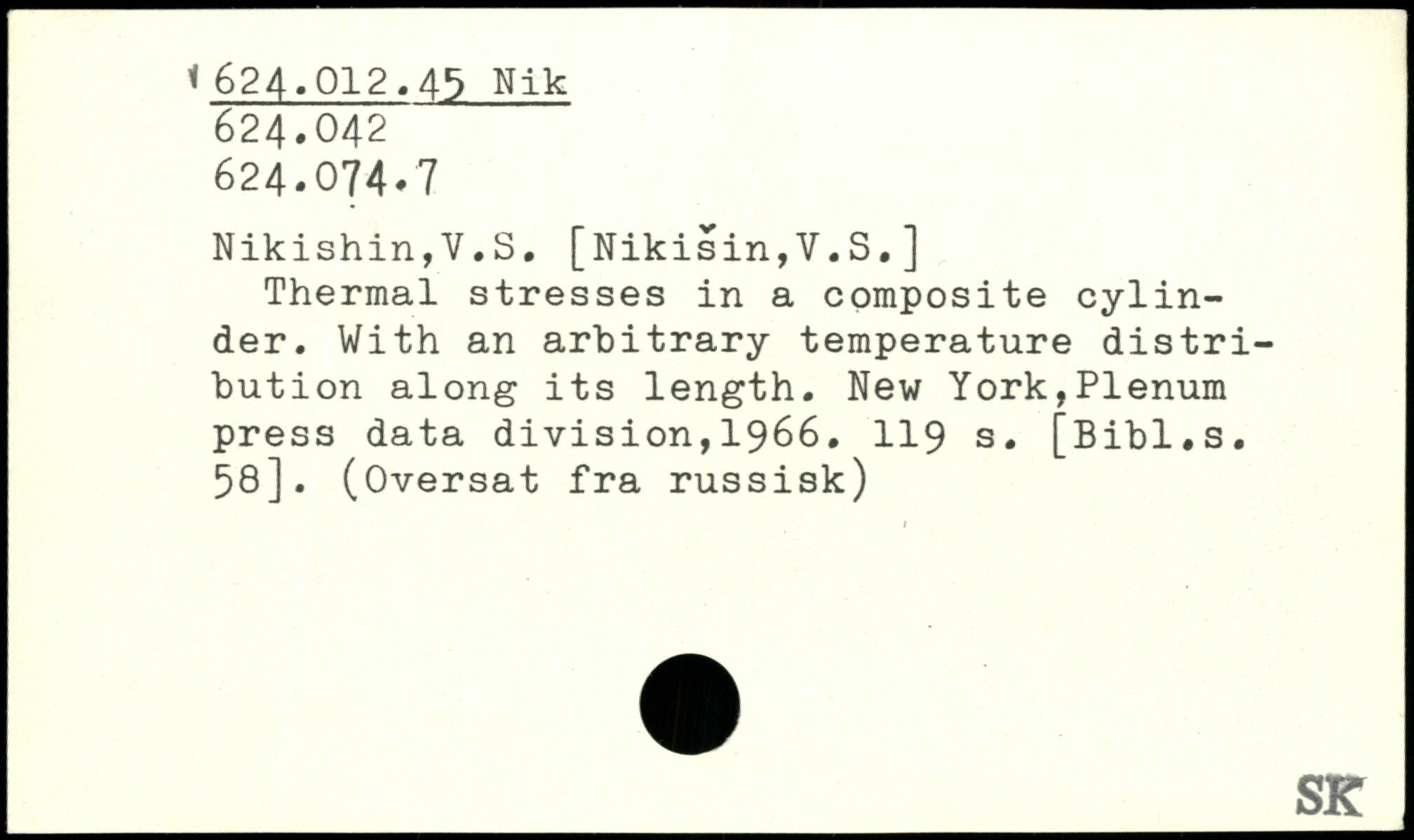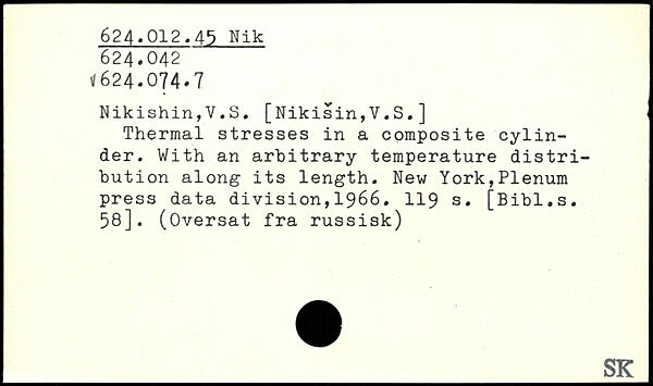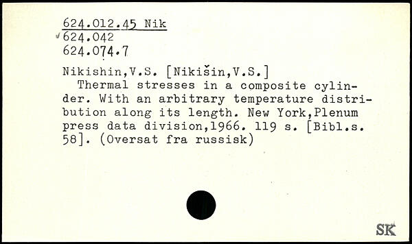 Nikishin,V.S. [Nikisin,V.S.] 1 Thermal stresses in a composite cylinder. With an arbitrary temperature distribution along its length.